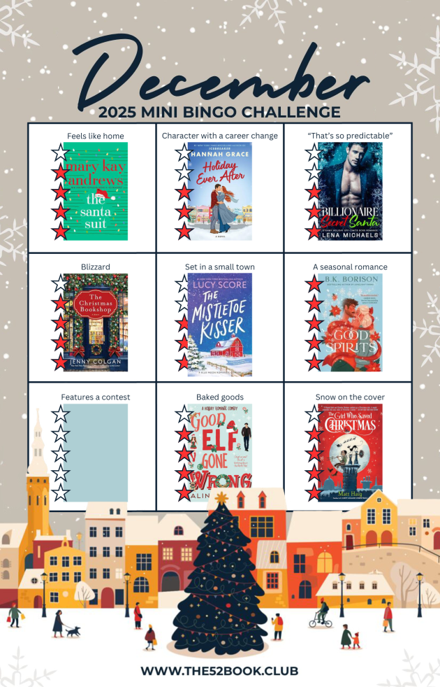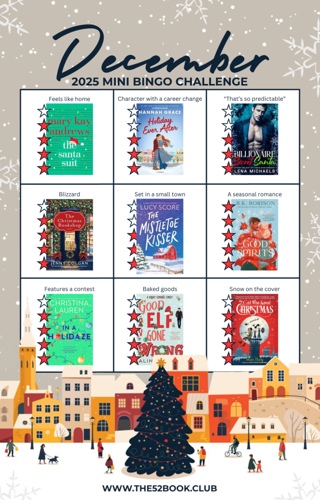 It should not be a surprise to know that I plan to participate in the 2026 challenge of The 52 Book Club. I’ve already started planning my reads for the year and have several options on hand so I can get a good start on January 1. I’ll try to be a little more active in completing the mini-challenges as they pop up now that I know I’ll be able to finish the main challenge, but I may have set myself up for not completing the minis since I have decided to add additional challenges to my life.