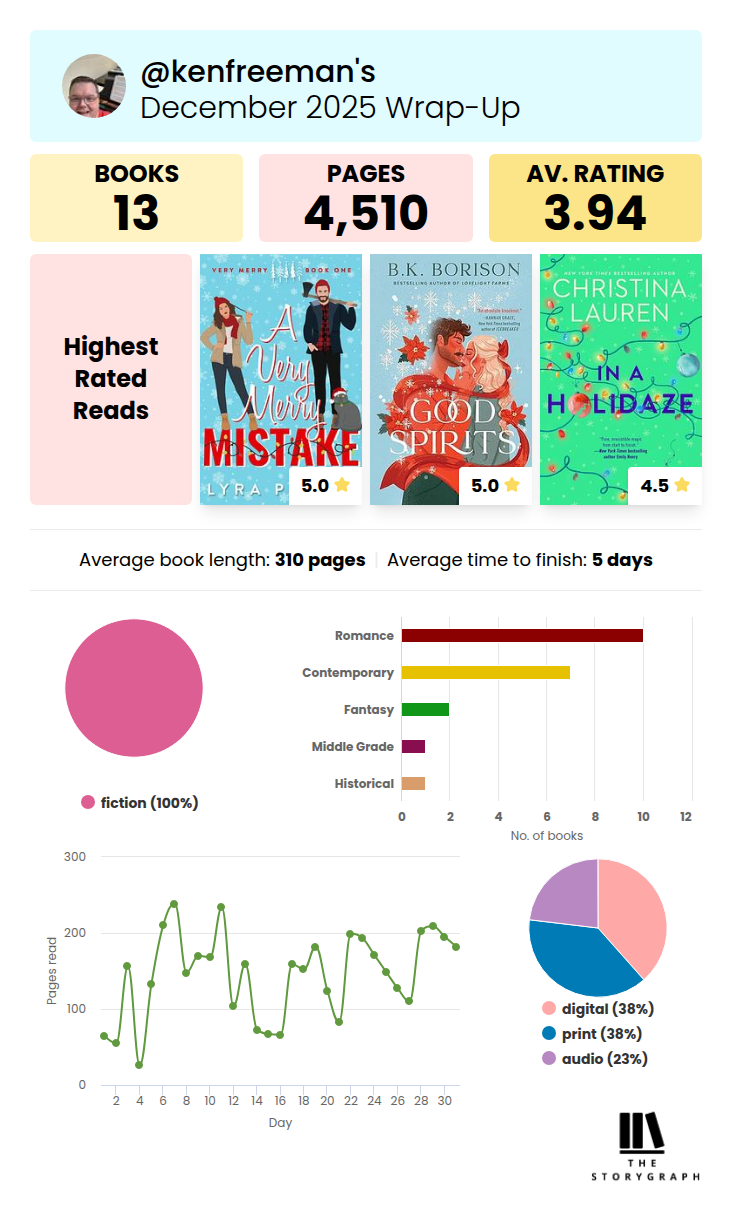 • Pages read in December: 4,510 (up 2,115 pages from November)